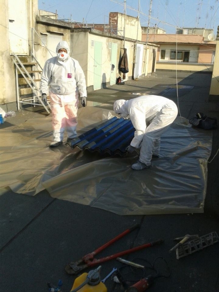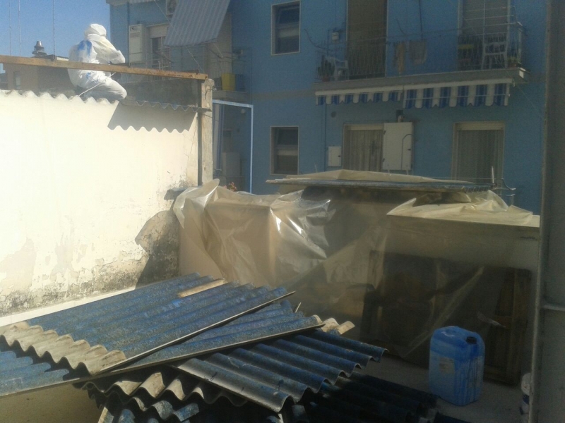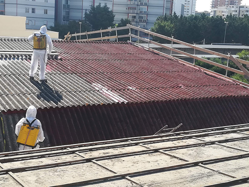 Intervento di rimozione, trasporto e smaltimento di lastre in cemento amianto. Lavoro commissionato dal Comune di Trani.