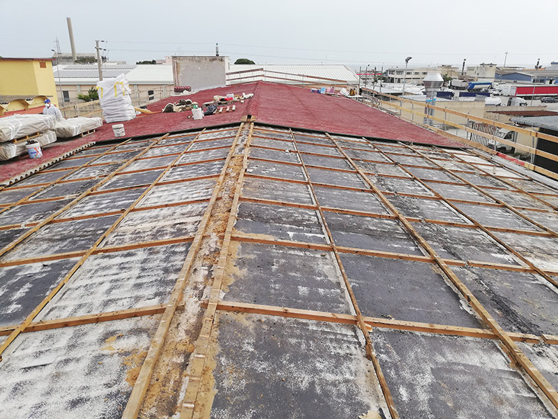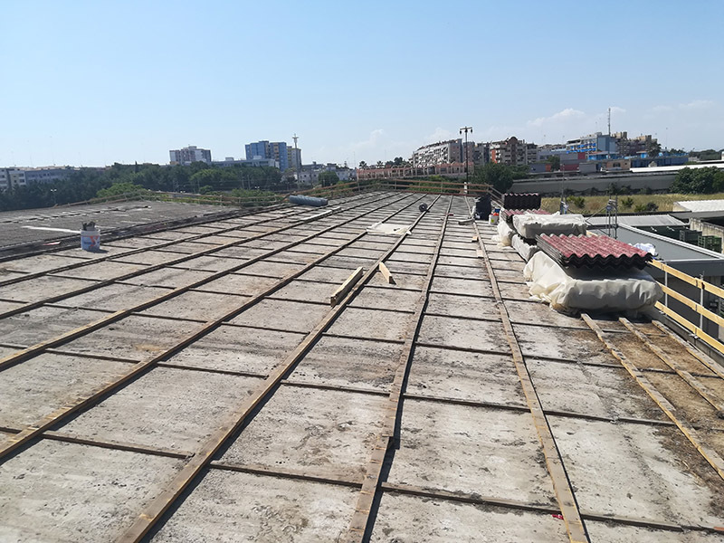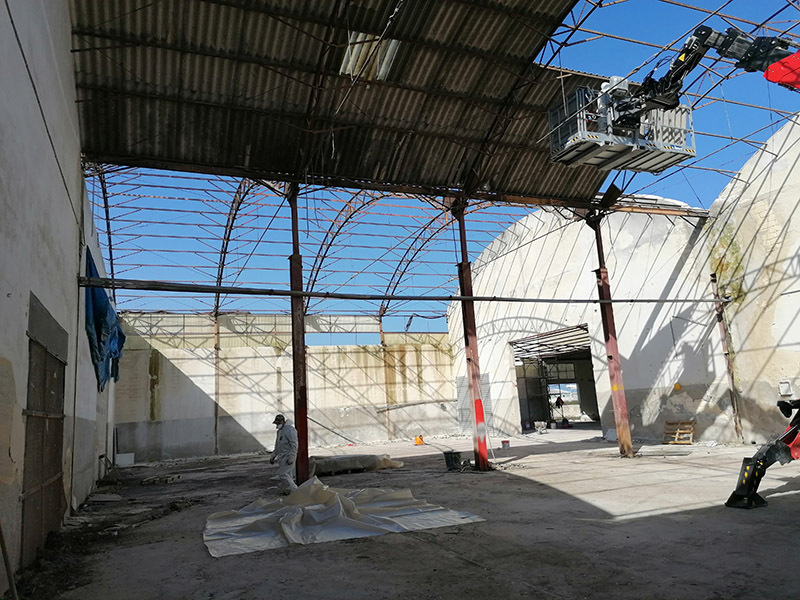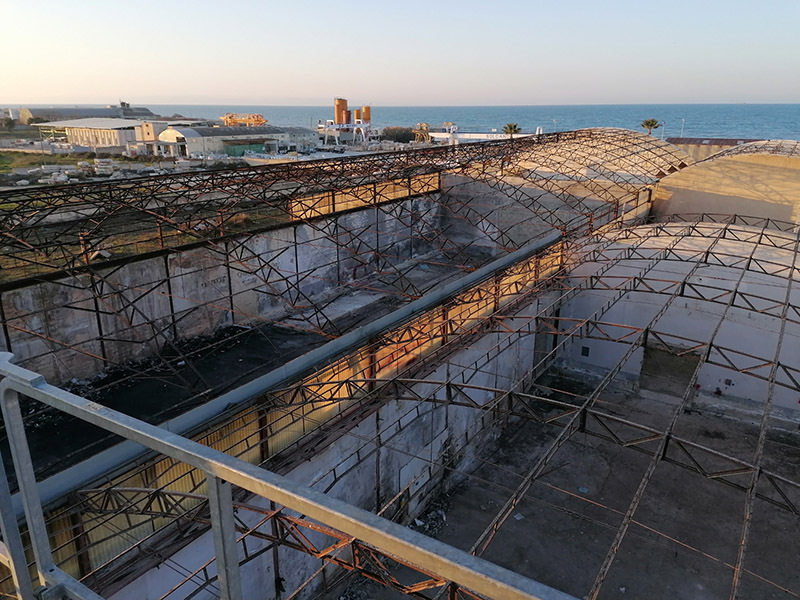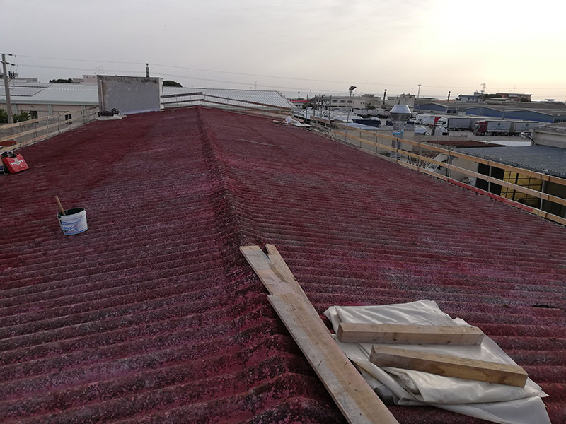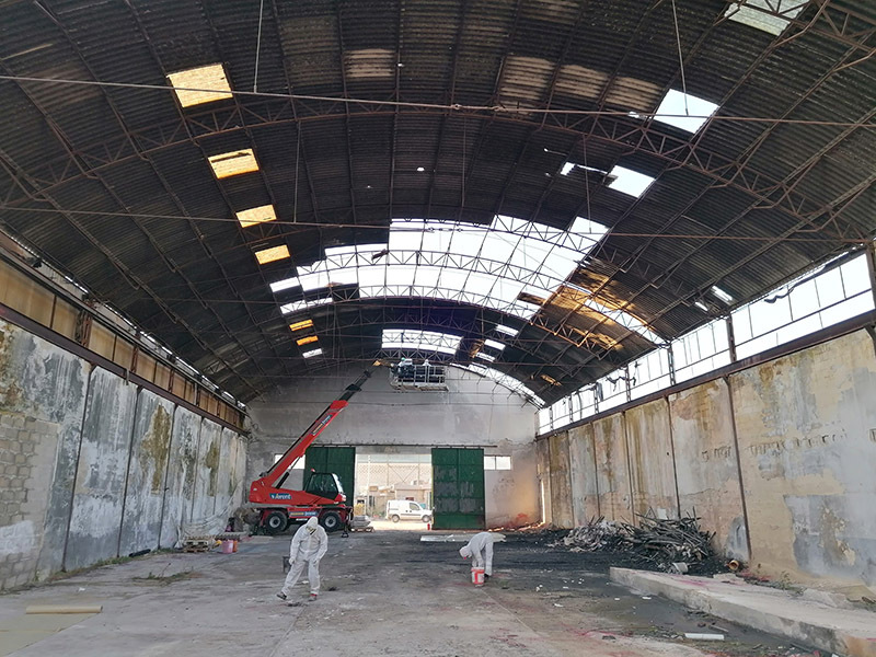 Rimozione copertura in lastre di cemento amianto di un ex segheria in via Curatoio a Trani.