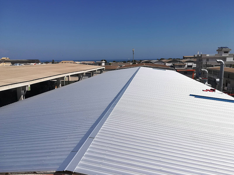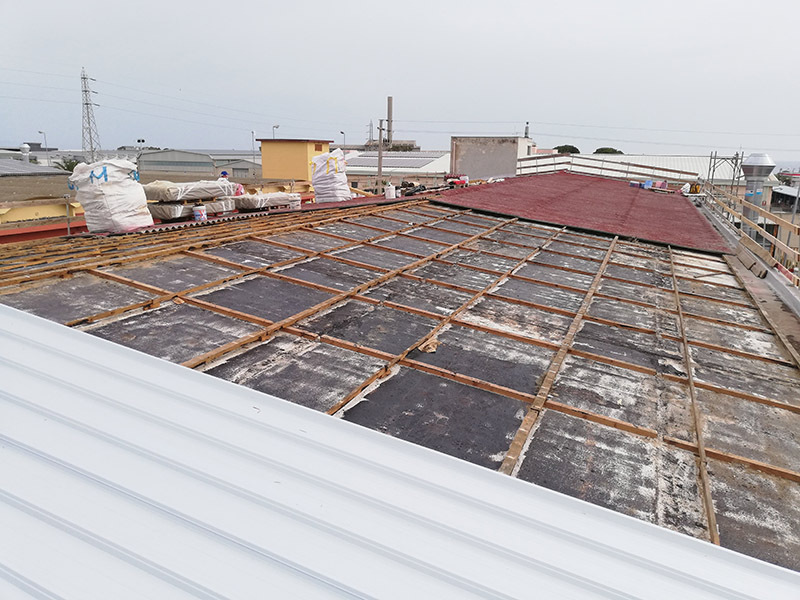 Differenti soluzioni di rifacimento delle coperture di capannoni industriali, previa rimozione di lastre in cemento amianto.
