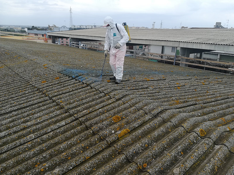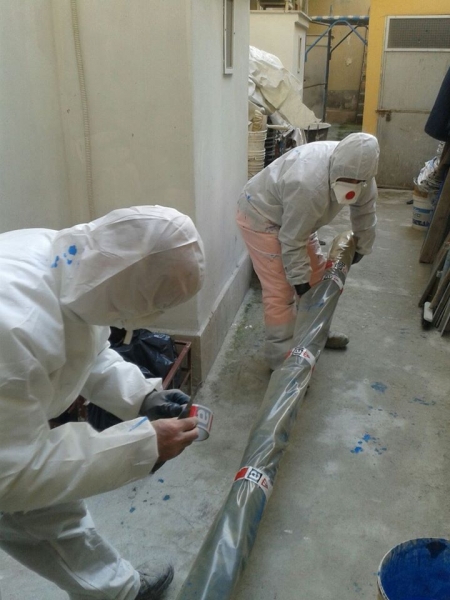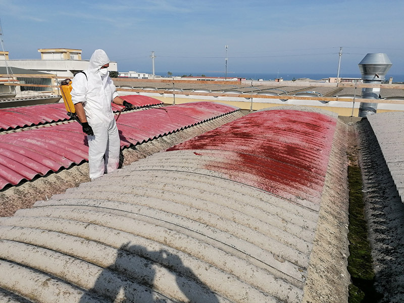 - Trattamento dei rifiuti con prodotto incapsulante del tipo Fixed D per evitare la dispersione delle fibre durante la rimozione e garantire la protezione sanitaria degli operatori;