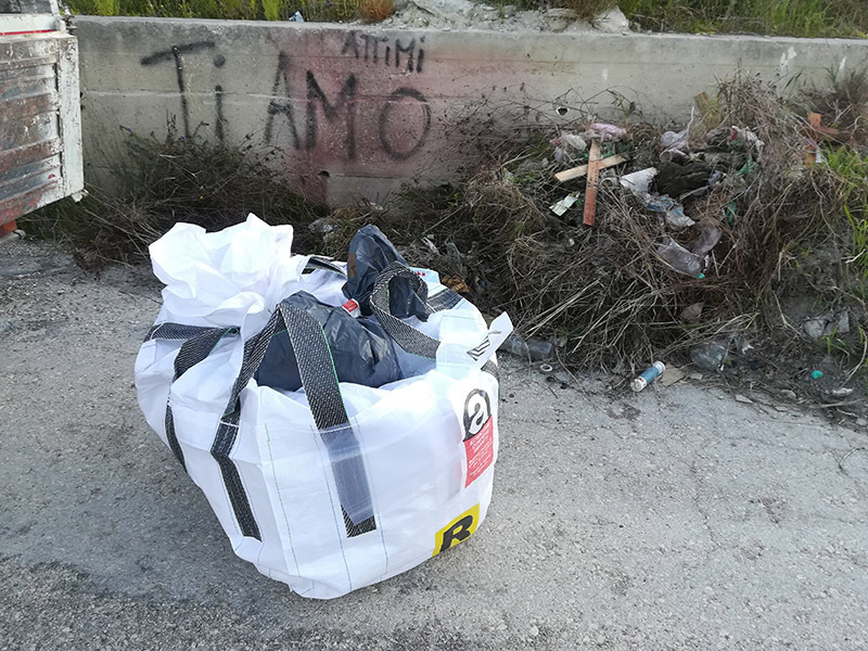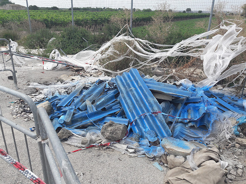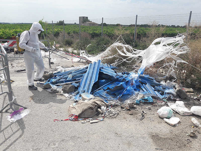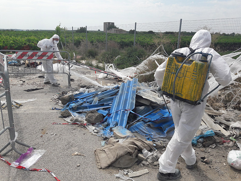 Intervento straordinario di raccolta, trasporto e smaltimento di lastre e frammenti in cemento amianto. Rifiuti abbandonati a Barletta.